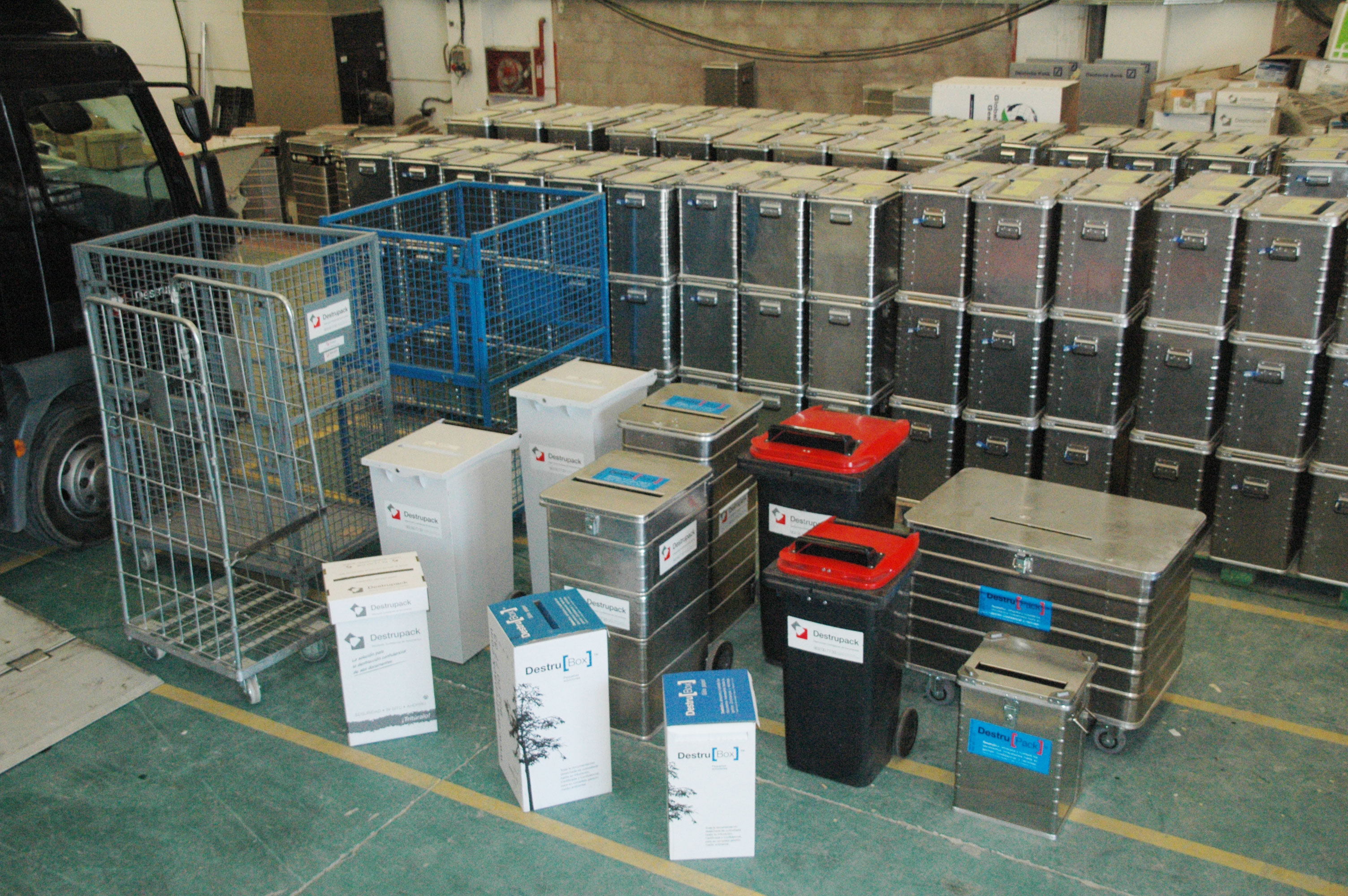 No es necesario. [tp no_translate=»y»]Destru[Pack][/tp] cargará el montón, el paquete o las cajas de papeles directamente en contenedores con ruedas o en palets y serán llevados directamente a nuestros vehículos. Ya sea para destruir in situ con camiones trituradores de gran capacidad o para trasladarlos a alguna de nuestras plantas de trituración confidencial.
